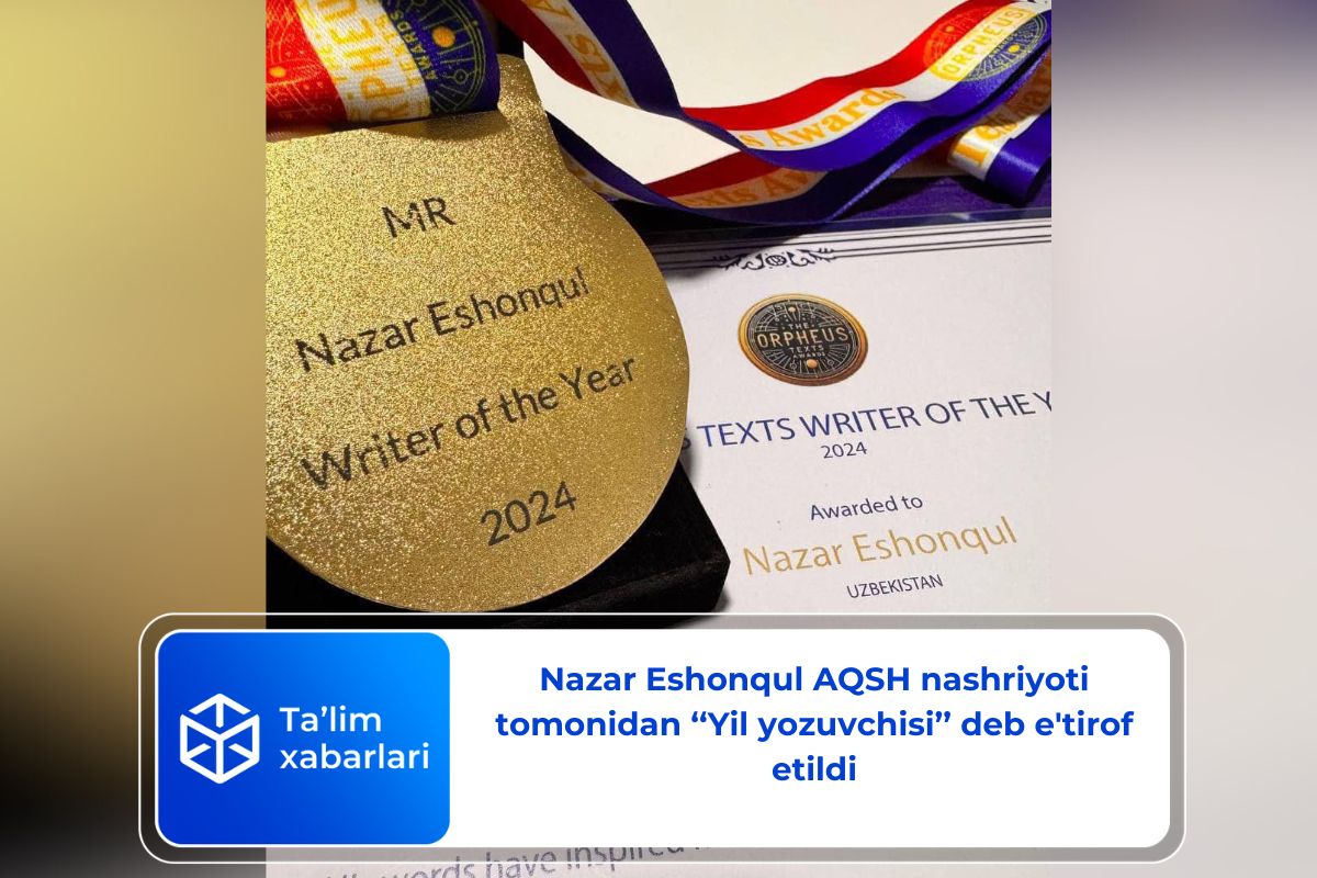 Yozuvchi Nazar Eshonqul AQSHning ‘‘Mundus Artium Press’’ nashriyoti tomonidan 2024-yilning ‘‘Yil yozuvchisi’’ deb e’tirof etildi.