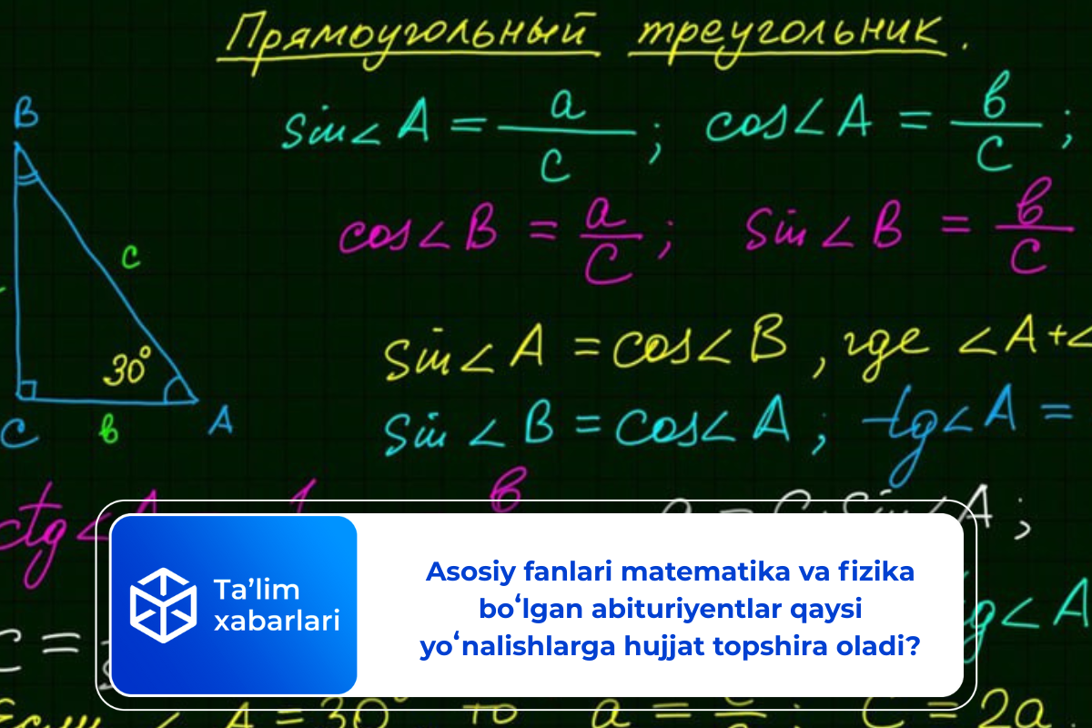 Asosiy fanlari matematika va fizika boʻlgan abituriyentlar aynan qaysi yoʻnalishlarga hujjat topshira oladi?