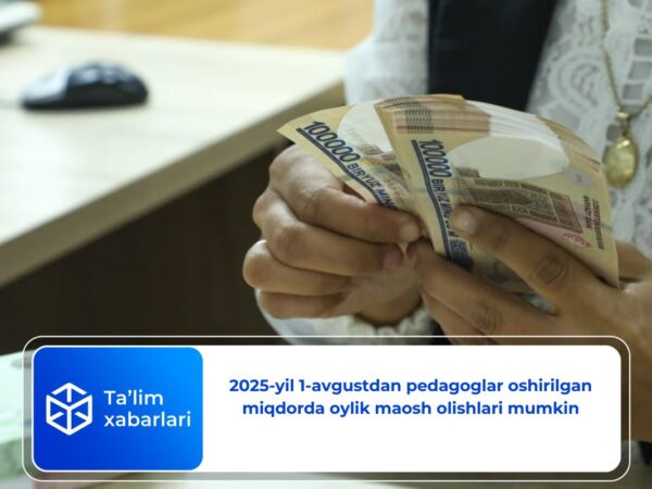 Farmonga muvofiq pedagoglar 1-avgustdan quyidagicha oshirilgan miqdorda oylik maosh oladilar: