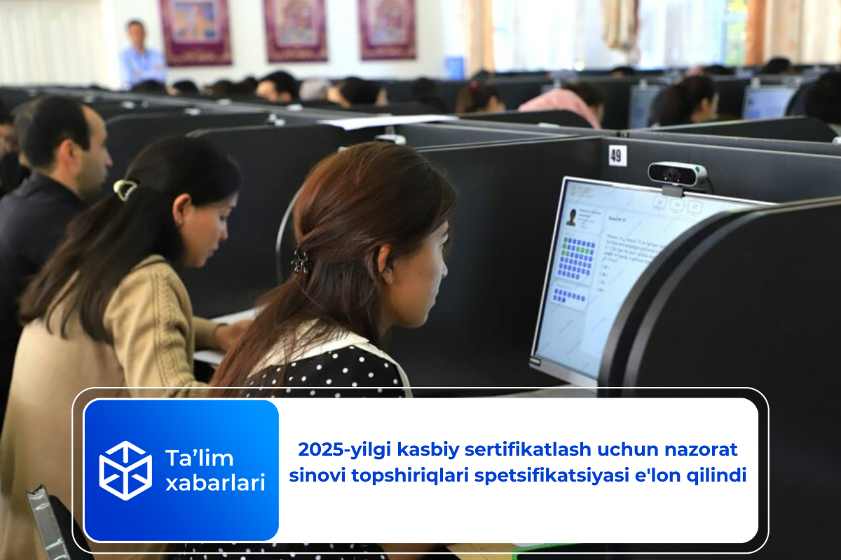 Joriy yilgi kasbiy sertifikatlash uchun nazorat sinovi topshiriqlari spetsifikatsiyasi e’lon qilindi.