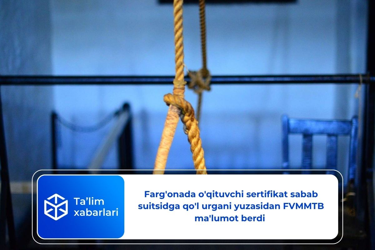 Farg’onada o’qituvchi sertifikat sabab suitsidga qo’l urgani yuzasidan FVMMTB ma’lumot berdi