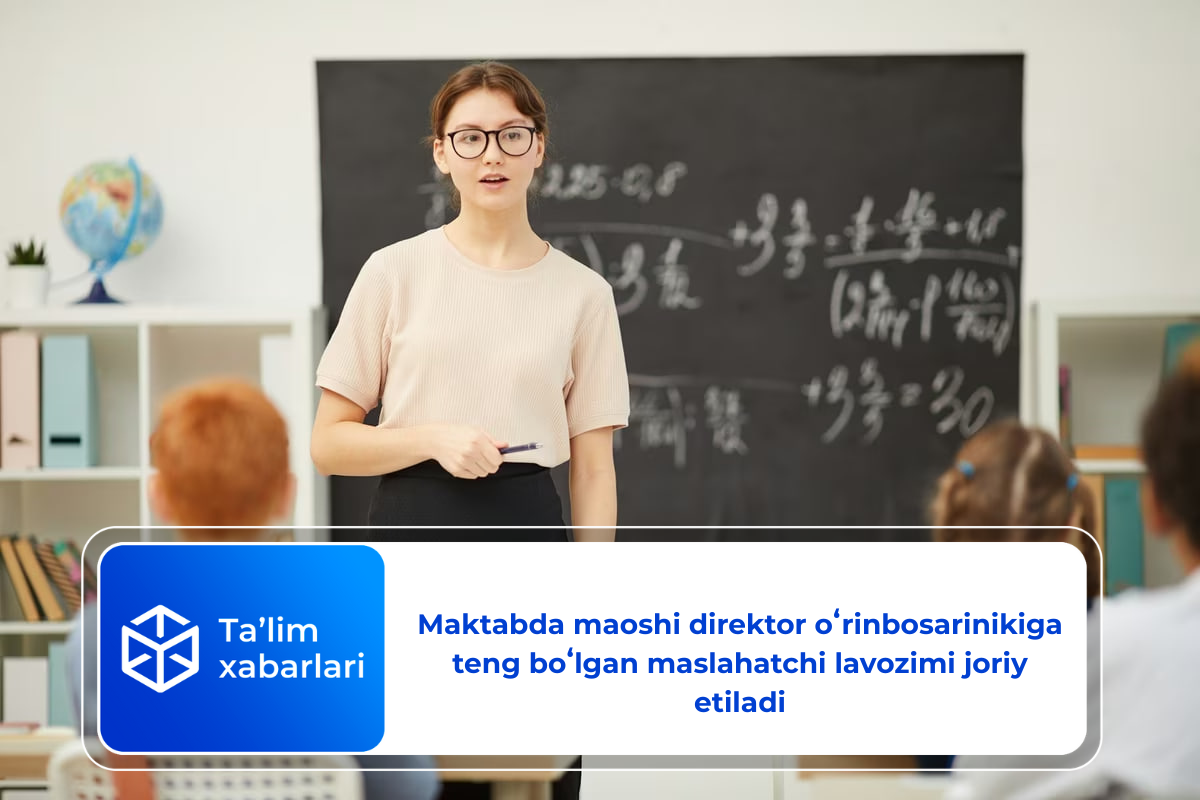 Umumiy oʻrta taʼlim tizimida oʻquvchilarning tashabbuslarini qoʻllab-quvvatlash va “Kelajak” markazlarining vertikal tizimini samarali joriy etish maqsadida yangi lavozim – maktab maslahatchisi joriy etiladi.