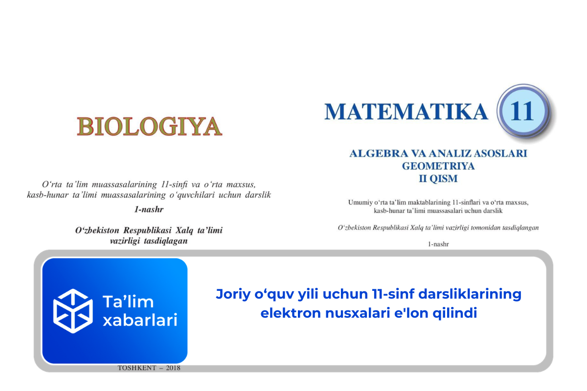Ta’limni rivojlantirish ilmiy-metodik markazi 2025–2026-o‘quv yili uchun 11-sinf darsliklarining elektron nusxalarini e’lon qildi.
