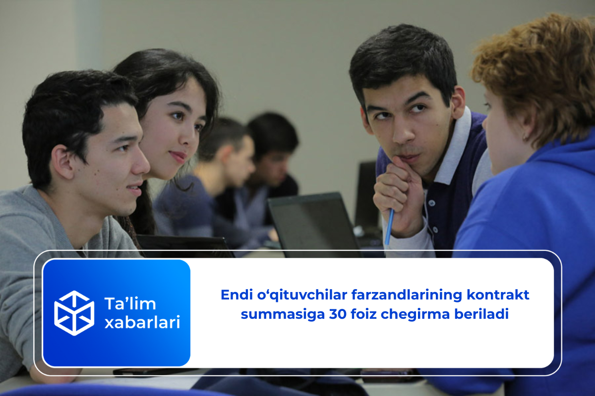 Unda kelgusi oʻquv yilida davlat oliygohlariga oʻqishga kirgan pedagoglar farzandlarining kontrakt summasiga 30 foiz chegirma berilishi ta’kidlandi.
