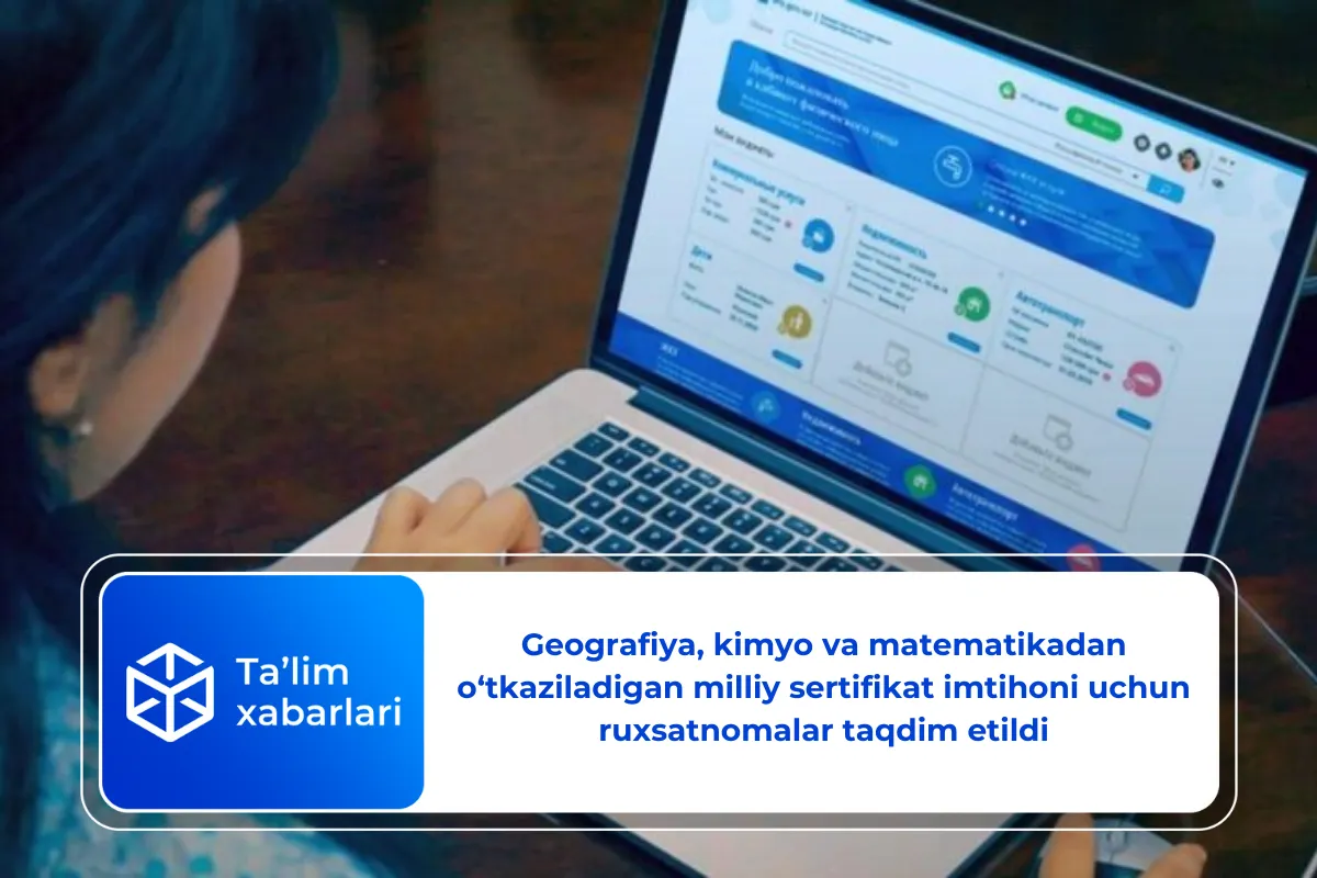 2025-yil 4-5-oktyabr (shanba-yakshanba) kunlari geografiya, kimyo va matematika fanlaridan bo‘lib o‘tadigan milliy sertifikat imtihoni uchun ruxsatnomalar e’lon qilindi.