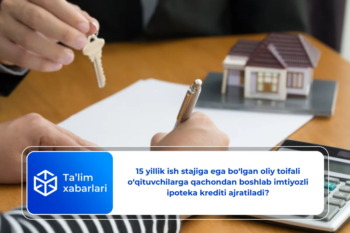 Unda yangi yildan boshlab kamida 15 yil stajga ega boʻlgan oliy toifali pedagoglarga ipoteka krediti boshlangʻich badalining 25 foizi qoplab berilishi haqida ma’lum qilingandi. Lekin hozircha bu bo‘yicha qaror e’lon qilinmadi.