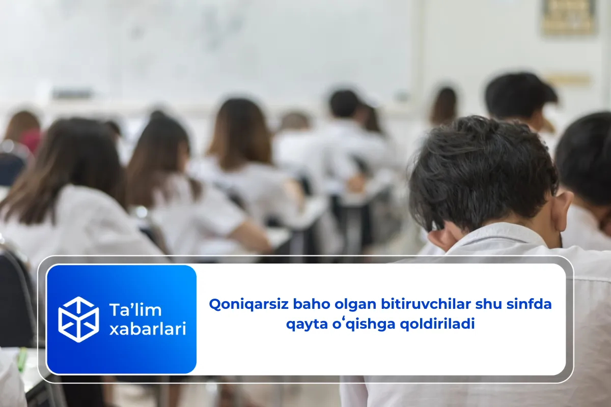 Yillik baho va yakuniy attestatsiya natijalariga koʻra, umumiy oʻrta taʼlim davlat taʼlim standartlari talablarini bajarmay, “qoniqarsiz” baho olgan bitiruvchilar shu sinfda qayta oʻqishga qoldiriladi.