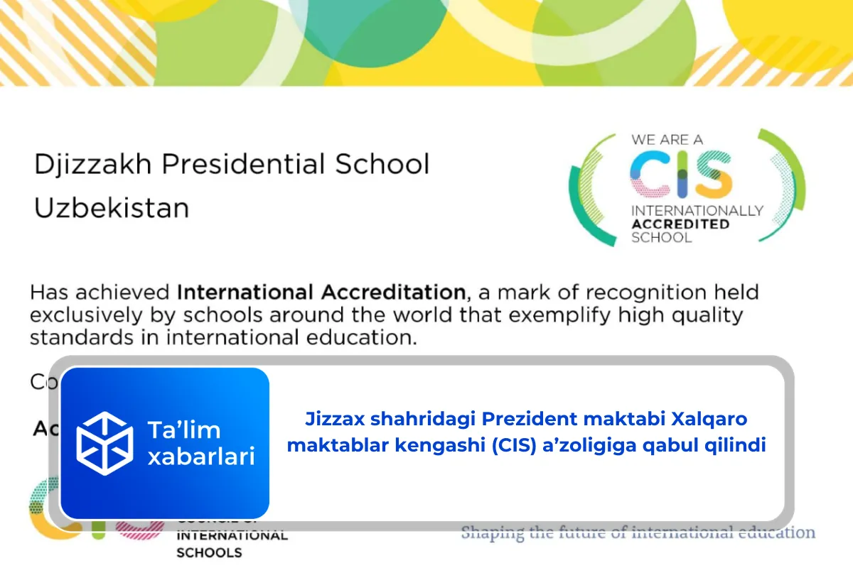 Jizzax shahridagi Prezident maktabi  Xalqaro maktablar kengashi (CIS) a’zoligiga qabul  qilindi