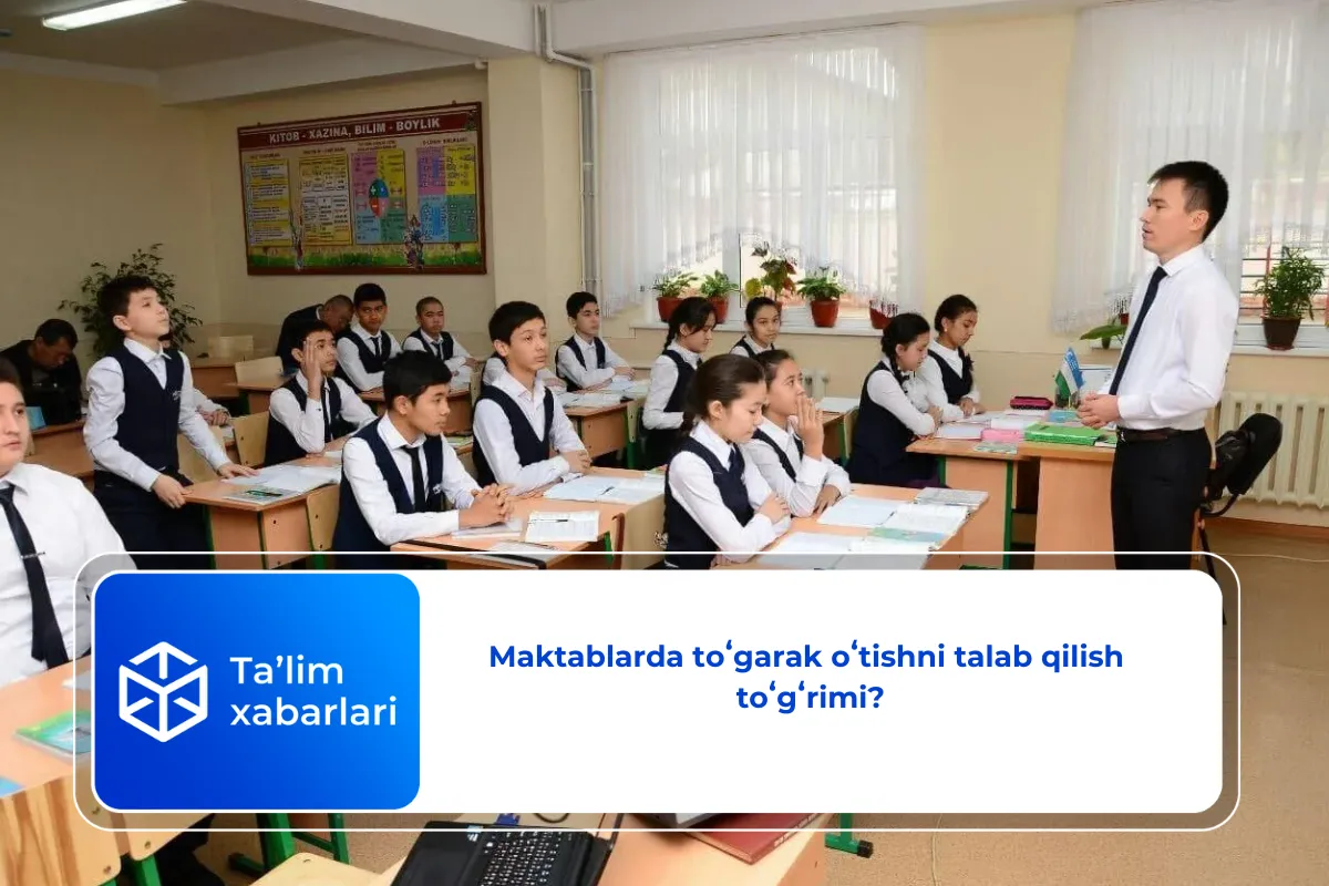Maktabgacha va maktab taʼlimi vazirining 2025-yil 16-maydagi 156-sonli buyrugʻiga 41-ilovada tasdiqlangan Umumiy oʻrta taʼlim maktabi (maktab-internat) xodimlarining lavozim yoʻriqnomalarida oʻqituvchining lavozim majburiyatlaridan biri sifatida oʻquvchilarning qobiliyat va isteʼdodlarini rivojlantirishni nazarda tutgan holda, fanlarni oʻzlashtirishda qiynalayotgan va iqtidorli oʻquvchilar bilan ishlash maqsadida oʻz fani boʻyicha toʻgarak mashgʻulotlarini tashkil etish ham koʻrsatilgan.