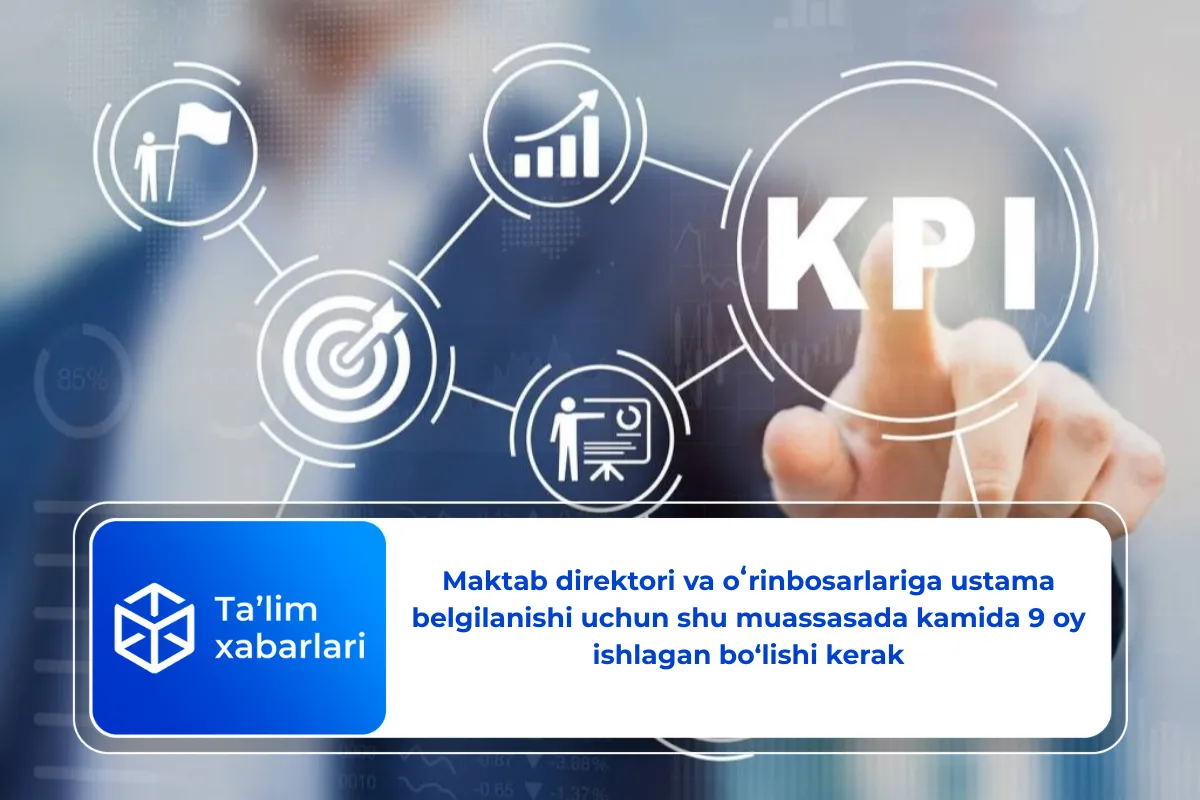 Xususan, umumta’lim muassasasining direktori va uning o‘rinbosarlariga faoliyat samaradorligi ko‘rsatkichlari (KPI) natijasiga ko‘ra, har oylik ustamalar to‘lash tartibi belgilangan.