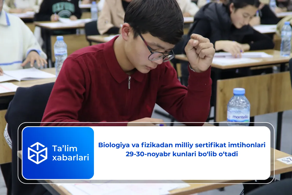 Avvalroq, biologiya va fizika fanlaridan milliy sertifikat imtihonlari 2025-yil 29-30-noyabr (shanba-yakshanba) kunlari bo‘lib o‘tishi belgilangani haqida xabar berilgandi.