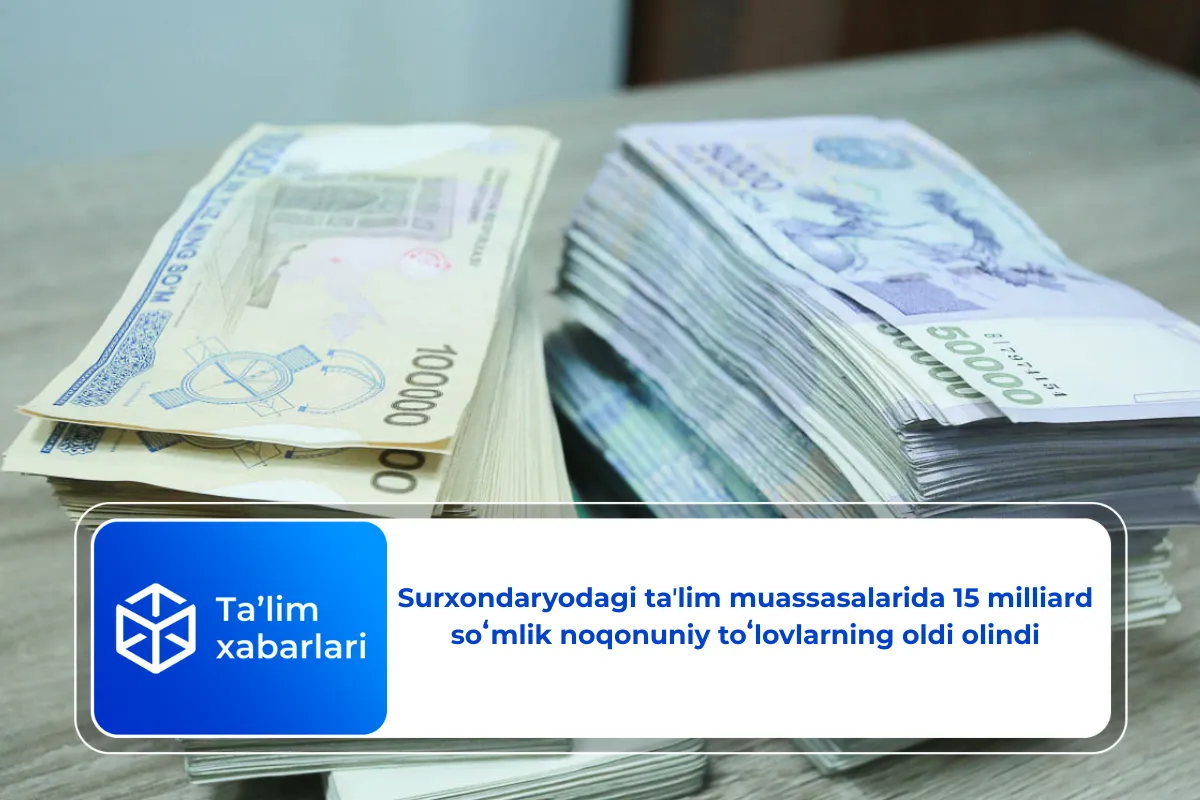 2025-yilda Surxondaryo viloyati maktabgacha va maktab ta’limi boshqarmasi hamda tasarrufidagi muassasa va tashkilotlarda 4 477 holatda 27,4 milliard so‘mdan ortiq moliyaviy xato va kamchiliklar aniqlandi.