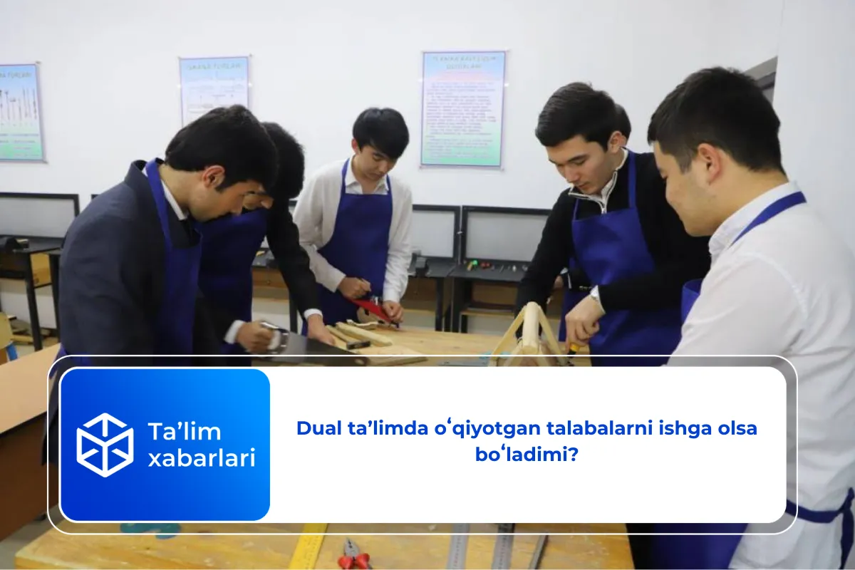 Oʻzbekiston Respublikasi Vazirlar Mahkamasining 2025-yil 16-yanvardagi “Oliy taʼlim tizimida dual taʼlimni tashkil etish chora-tadbirlari toʻgʻrisida”gi 14-son qaroriga asosan, korxonalarga talabalarni mehnat qonunchiligi asosida ishga qabul qilish majburiyati yuklangan. Talabalar esa korxonadagi mehnat va jamoat ishlarida qatnashish huquqiga ega.