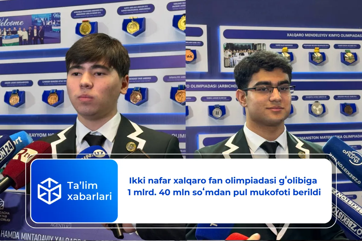 Joriy yilda ilk marta nufuzli xalqaro fan olimpiadasida oltin medal olgan o’quvchiga 1 mlrd so’mdan ko’proq pul mukofoti berilmoqda!