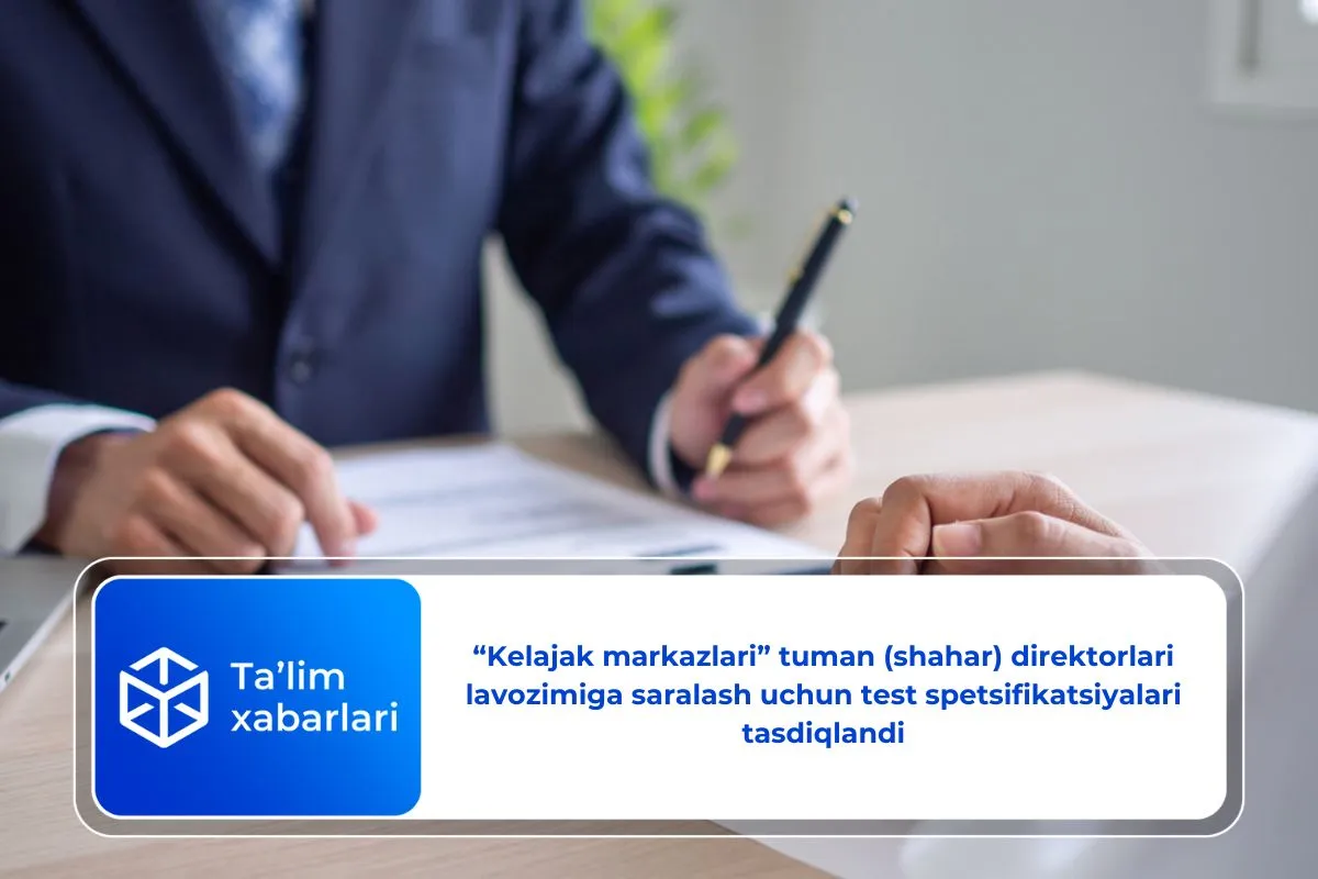 “Kelajak markazlari” tuman (shahar) direktorlari lavozimiga saralash uchun test spetsifikatsiyalari tasdiqlandi