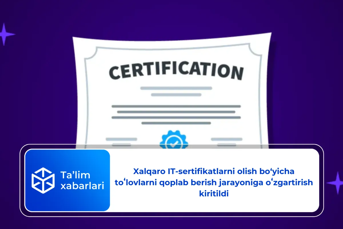 Ingliz tili boʻyicha B2 va undan yuqori darajadagi hamda professional darajadagi IT-sertifikatga ega boʻlgan yoshlarning xalqaro IT-sertifikatni olish xarajatlari toʻliq qoplab beriladi.