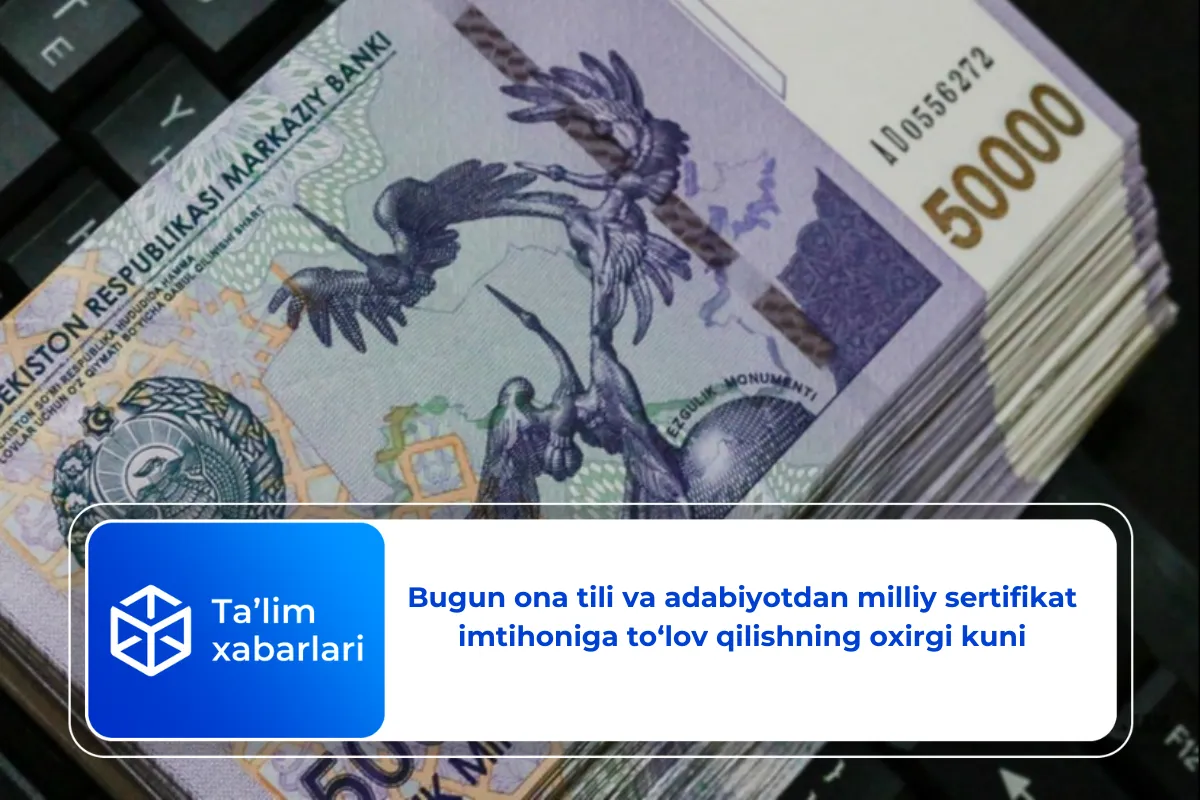 Joriy yilning 1-yarmida ona (o‘zbek, qoraqalpoq va rus) tili va adabiyot fanlaridan o‘tkaziladigan milliy sertifikat imtihoni uchun ro‘yxatdan o‘tish 9-yanvargacha bo‘lib o‘tadi. To‘lovlar esa 10-yanvargacha davom etadi.