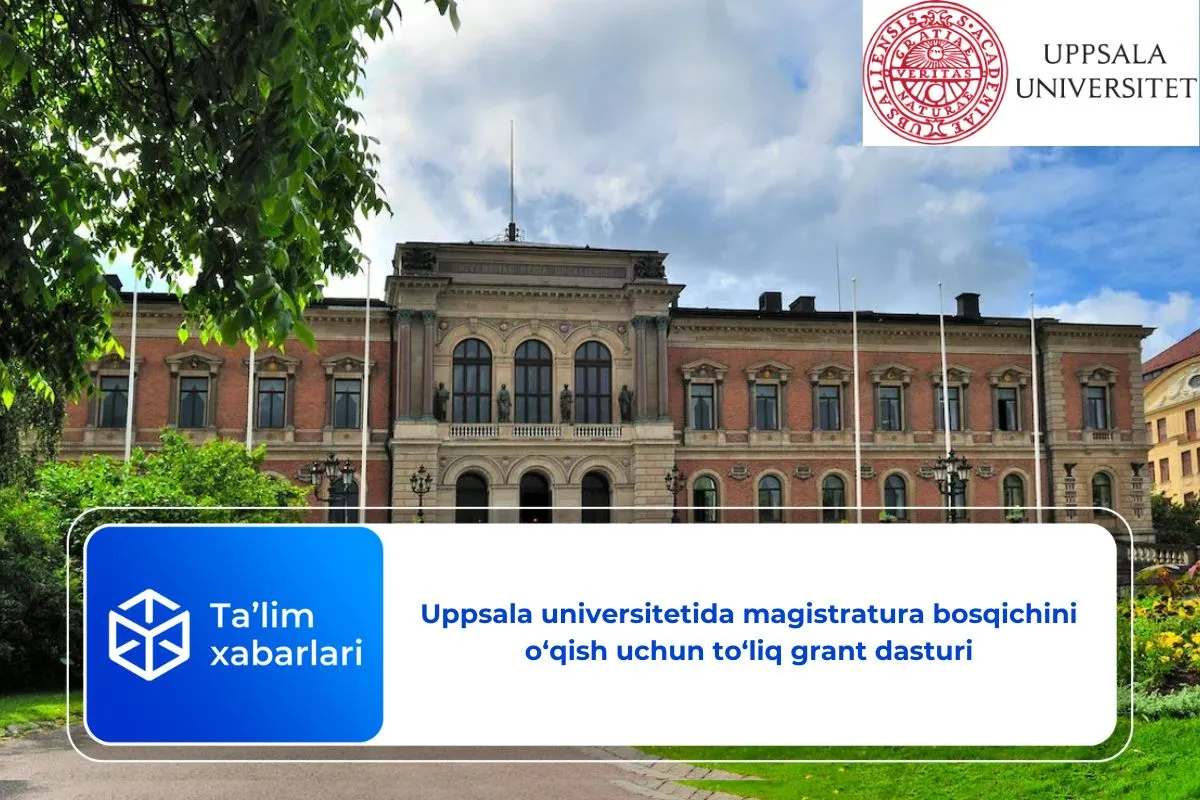 2025-yil 16-yanvardan 2-fevralgacha boʻlgan muddatda Uppsala University Global Scholarship dasturiga onlayn shaklda ariza topshirish mumkin.