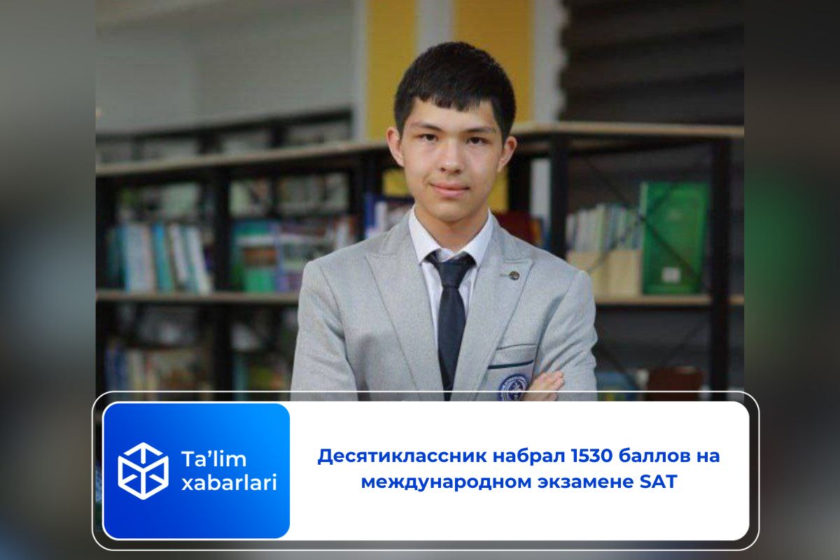 Ученик 10 класса специализированной школы Алмазарского района Умиджон Зафаров набрал 1530 баллов на международном экзамене SAT.