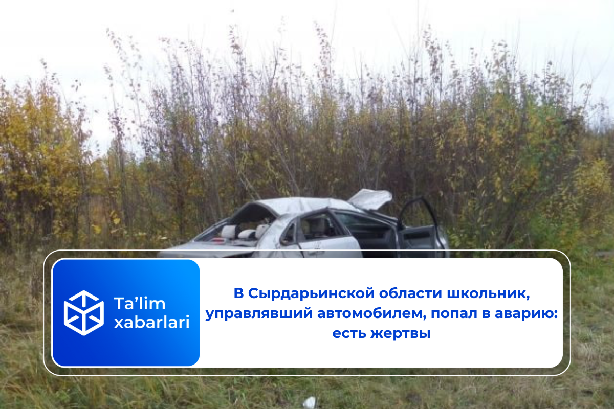 По данным ведомства, 19 сентября текущего года около 22:00 на 1-м километре участка местной автодороги 20V036 направления «Шоликор–Сырдарья», проходящей через махаллю Фуркат Сырдарьинского района, несовершеннолетний Д.А., 2010 года рождения, управляя без разрешения отца принадлежащим ему автомобилем «Lacetti», из-за высокой скорости не справился с управлением и съехал в придорожный арык, что привело к ДТП.