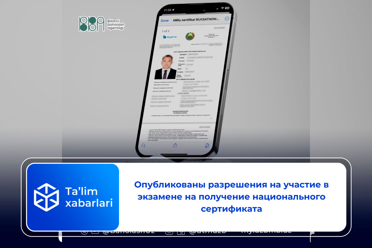 Опубликованы разрешения на участие в экзамене на получение национального сертификата