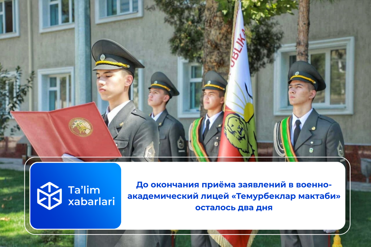 Ученики 9-х классов общеобразовательных школ, желающие поступить в военно-академический лицей «Темурбеклар мактаби» при Службе государственной безопасности, могут подать заявление с 5 сентября по 15 октября 2025 года.