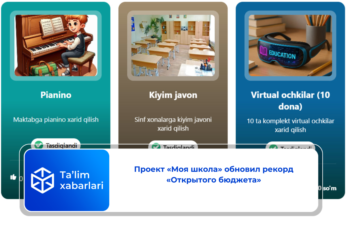 Для реализации предложений, получивших наибольшее количество голосов, каждой школе будет выделено по 62 миллиона сумов из местного бюджета.