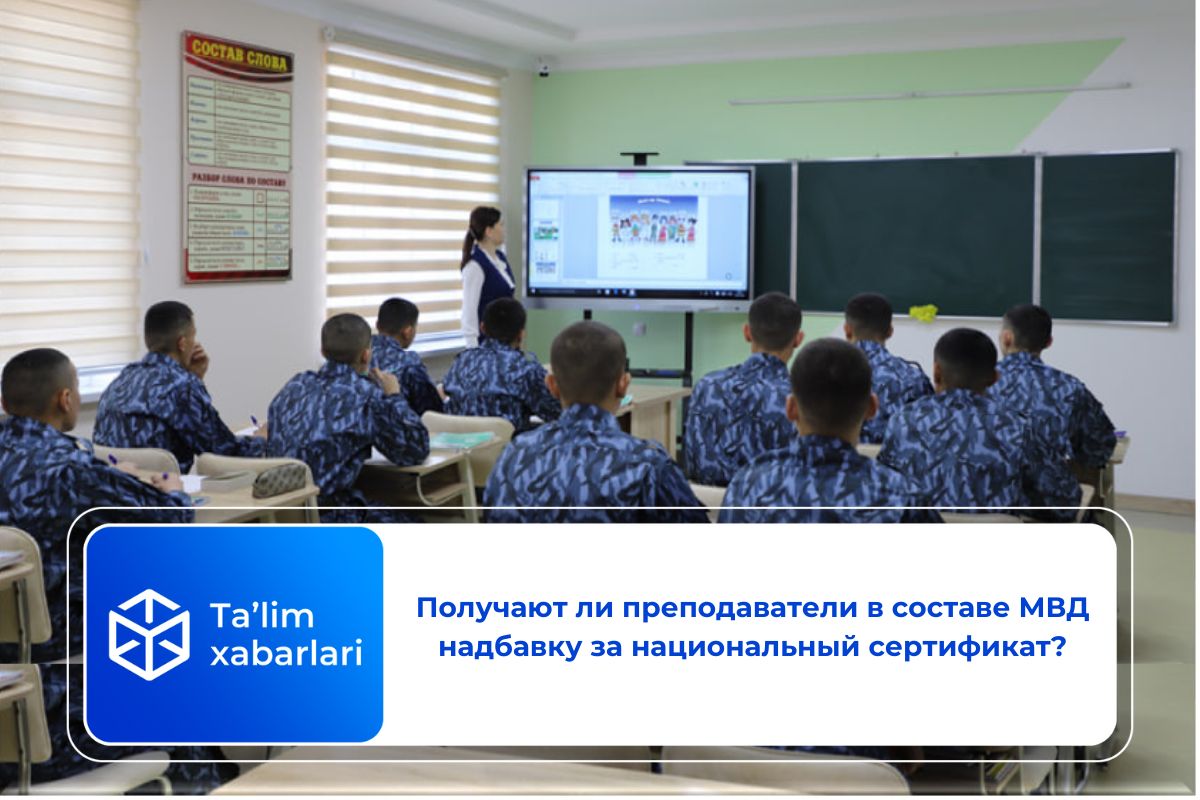 Согласно Указу Президента Республики Узбекистан №134 от 11 мая 2022 года, установлен порядок выплаты надбавок педагогам, имеющим национальный сертификат по предметам общего среднего образования.