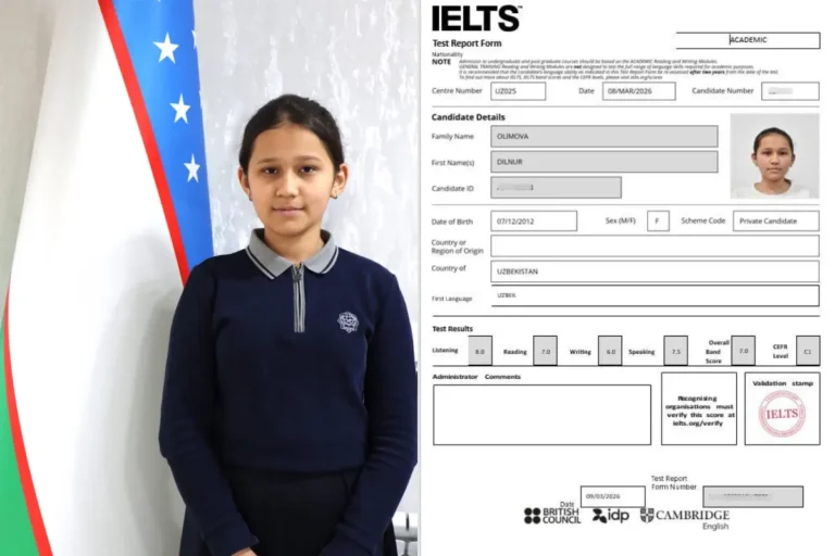 “IELTS 7.0 – bu faqat boshlanishi”: qarshilik 7-sinf o‘quvchisi xalqaro sertifikatni qo‘lga kiritdi