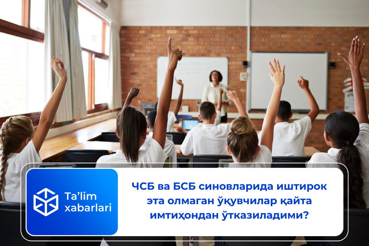 «Узрли сабабларга кўра ЧСБ ва БСБ синовларида иштирок эта олмаган ўқувчиларга имтиҳонни қайта топшириш учун имконият берилади, шунингдек, уларнинг йиққан баллидан камайтирилмайди. Ўқувчи имтиҳонда неча баллни йиғса, шу балл қўйилади», – дейди Сардор Ражабов