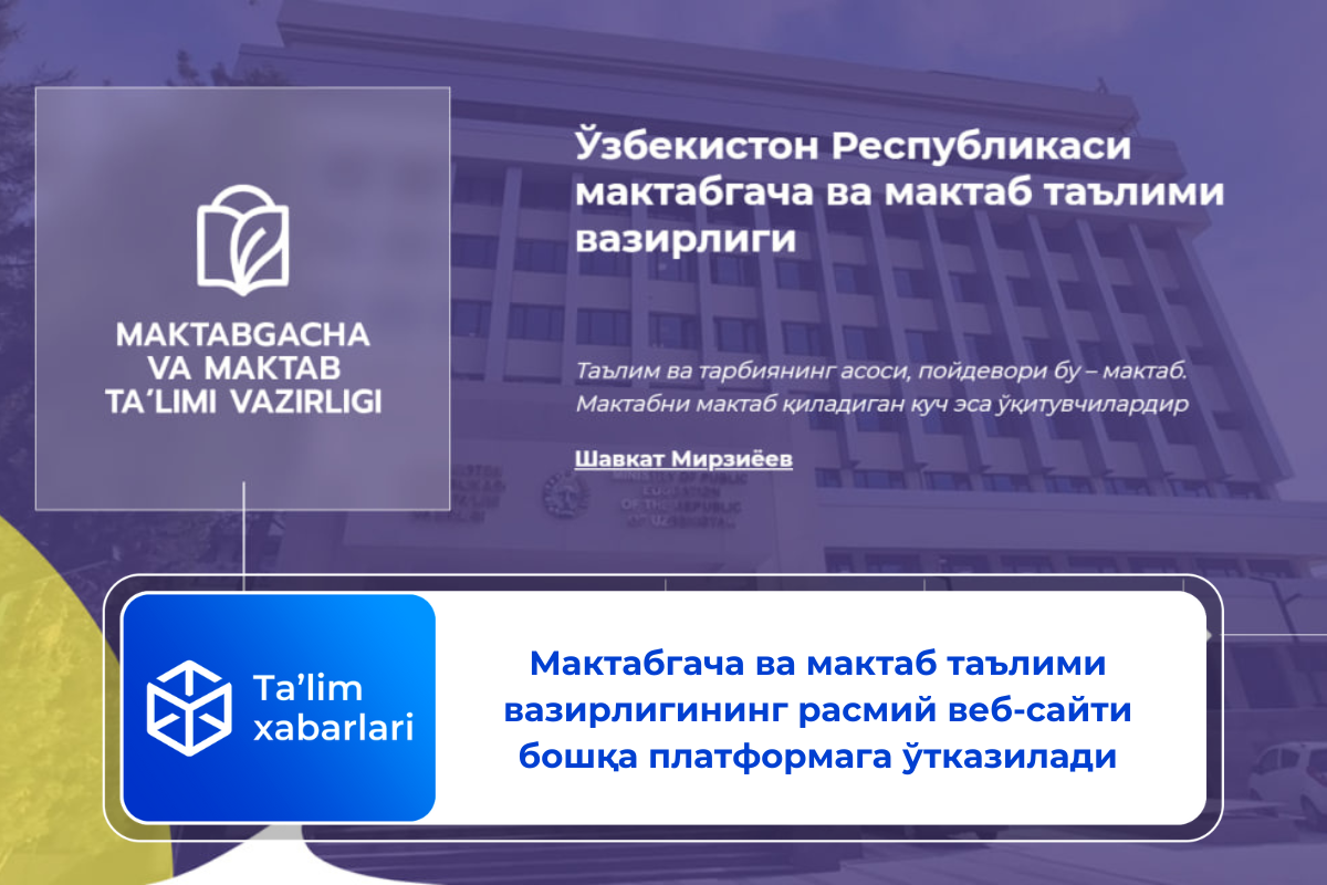 Айни вақтда gov.uz/uzedu сайтида Мактабгача ва мактаб таълими вазирлигининг барча маълумотлари шакллантирилган. 2025 йил 1 мартдан бошлаб вазирлик веб-сайти ягона платформага ўтказилади.