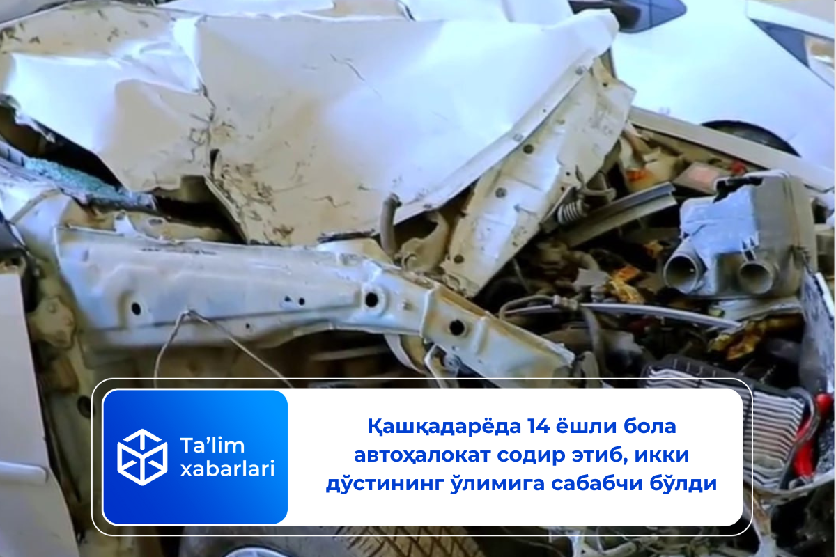Хабар қилинишича, 19 апрель куни Қарши тумани «Қозикент» маҳалласида 14 ёшли бола отасининг автомашинасини рухсатсиз бошқарган ва автоҳалокатга учраган — машинада бўлган 2 дўсти воқеа жойида ҳалок бўлган.
