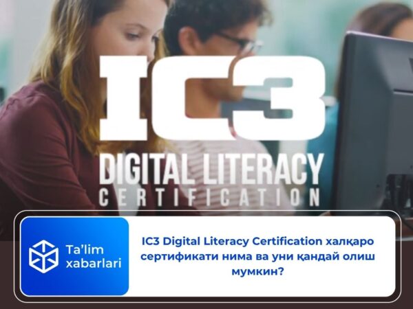 IC3 Digital Literacy Certification — бу халқаро даражада тан олинган, рақамли саводхонликни тасдиқловчи сертификатдир. IC3 (Internet and Computing Core Certification) — бу турли хил рақамли воситалар ва интернет технологияларидан фойдаланишни билиш даражасини ўлчайдиган ва тасдиқлайдиган сертификатлаш тизимидир.