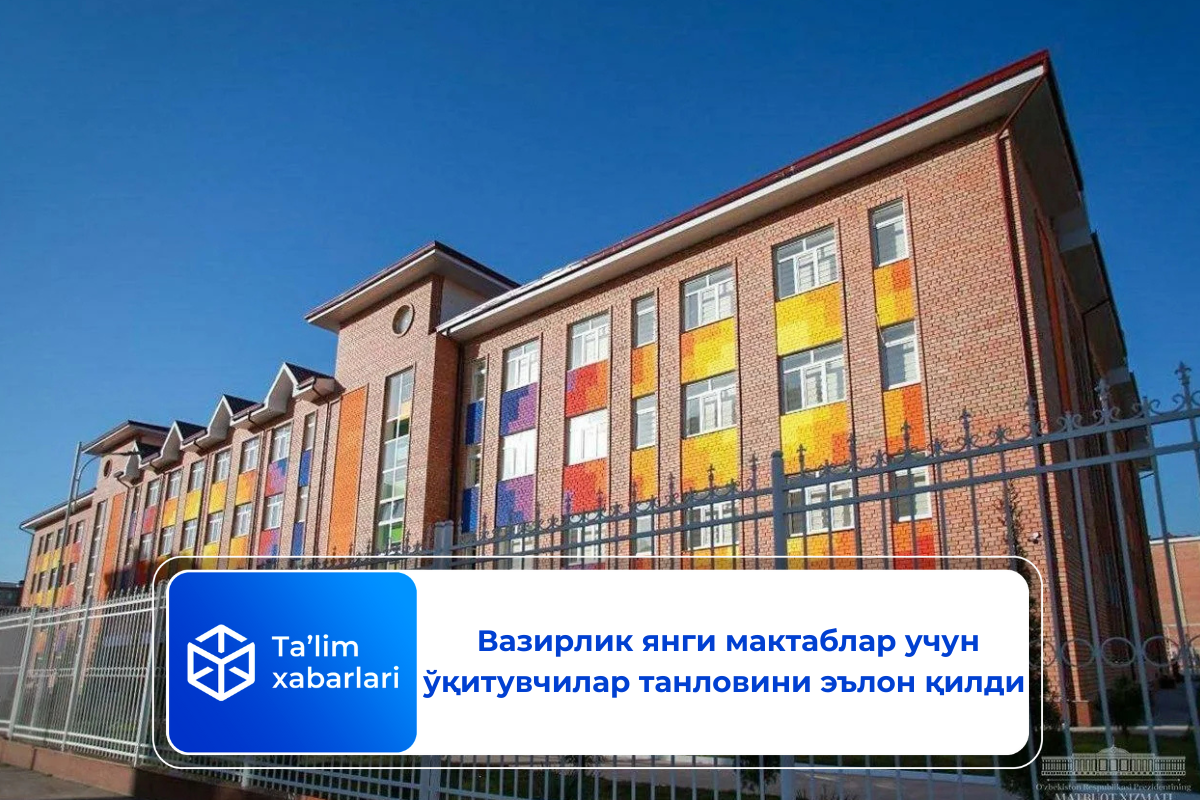 Мактабгача ва мактаб таълими вазирлиги янги мактаблар учун ўқитувчилар танловини эълон қилди.