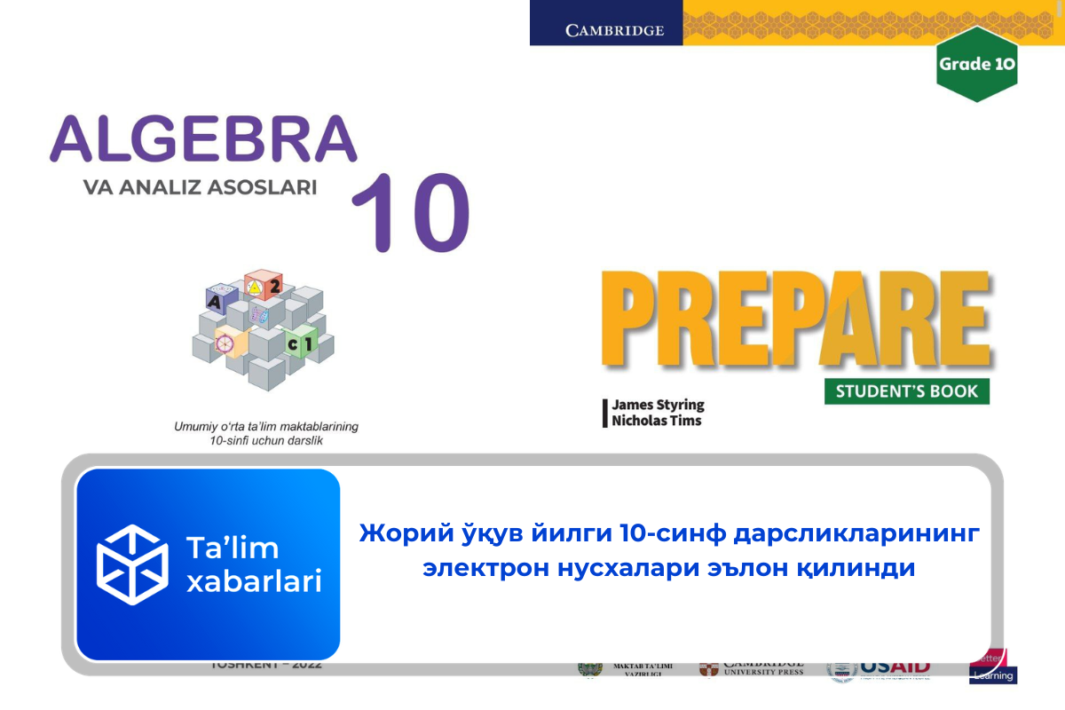 Таълимни ривожлантириш илмий-методик маркази 2025–2026-ўқув йили учун 10-синф дарсликларининг электрон нусхаларини эълон қилди.