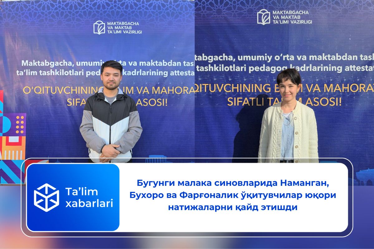 Бугунги аттестация синовларида қуйидаги ўқитувчилар юқори натижаларни қайд этишди: