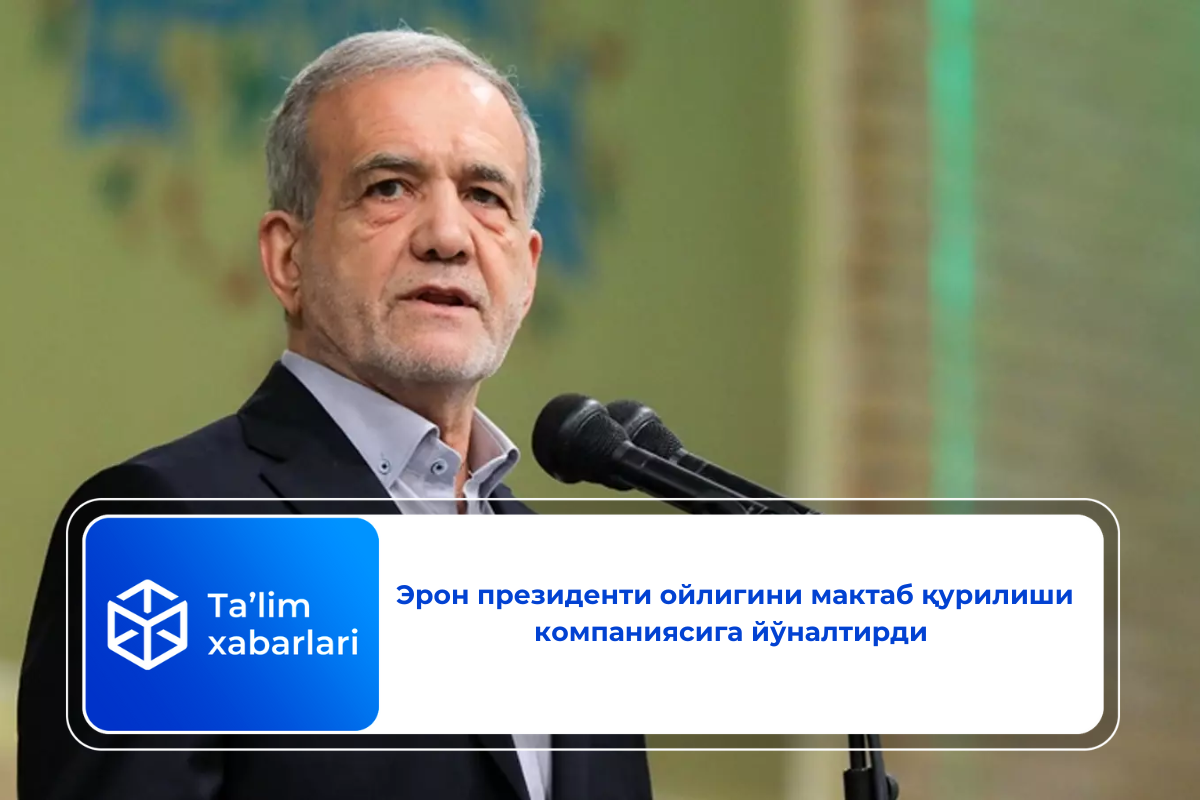 Эрон президенти Масъуд Пизишкиён ўзининг ойлик маошини мактаблар қурилиши бўйича миллий компания ҳисобига ўтказиб, бу ҳақдаги ваъдасини 48 соатдан кам вақт ичида бажарди. Бу ҳақда SNNTV нашрига Мактабларни таъмирлаш, ривожлантириш ва жиҳозлаш миллий ташкилоти раҳбари Ризо Хонмуҳаммадий хабар берган.
