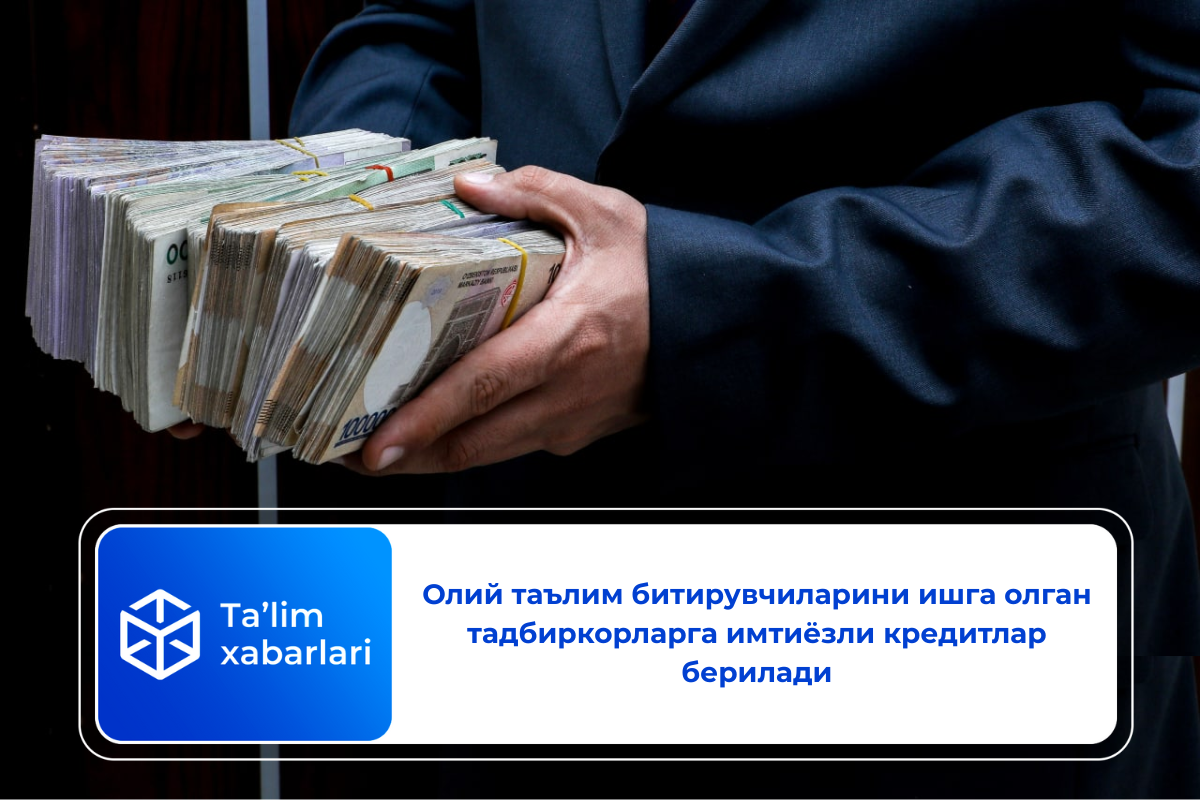 Олий таълим битирувчиларини ишга олган тадбиркорларга имтиёзли кредитлар берилади