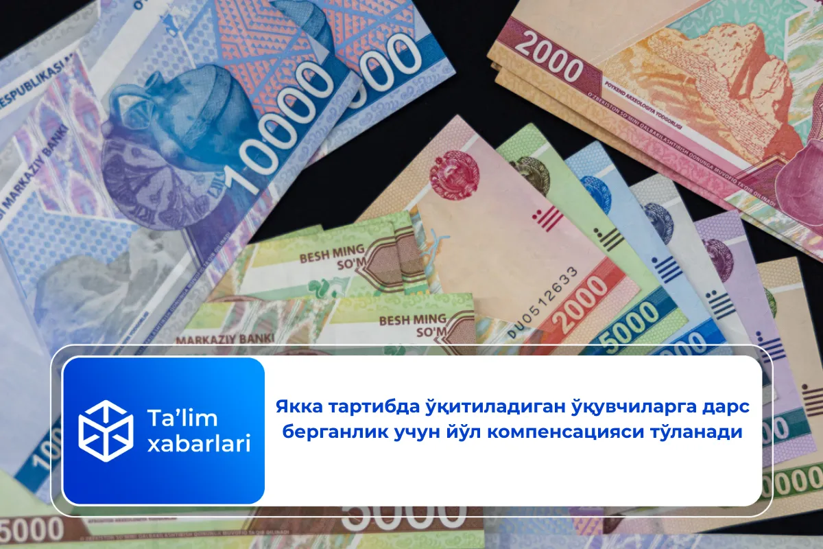 Киритилган қўшимчаларга кўра, уйда якка тартибда ўқитиладиган ўқувчиларни, шу жумладан, 1 хил ёшдаги ва 1 та манзилдаги 2 ва ундан ортиқ ўқувчиларни ўқитганлик учун мактаб ўқитувчиларига БҲМнинг 1 баравари миқдорида ойлик йўл компенсацияси тўланади.